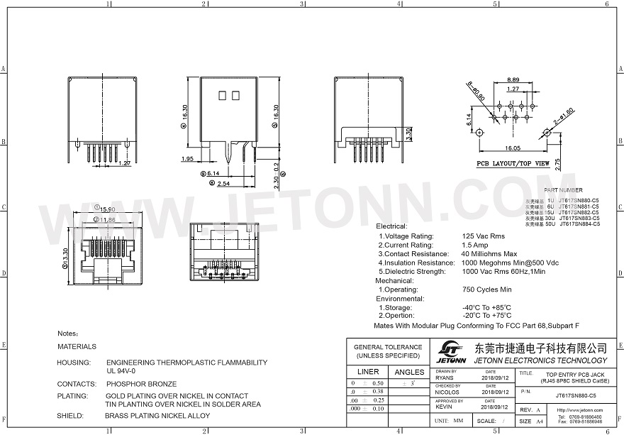 東莞市捷通電子科技有限公司 成立于2018年,是一家專業(yè)網(wǎng)絡(luò)通訊連接器及防水連接器制造商,主要從事連接器的研發(fā)、設(shè)計(jì)、生產(chǎn)、銷售以及模具開發(fā)等服務(wù)!