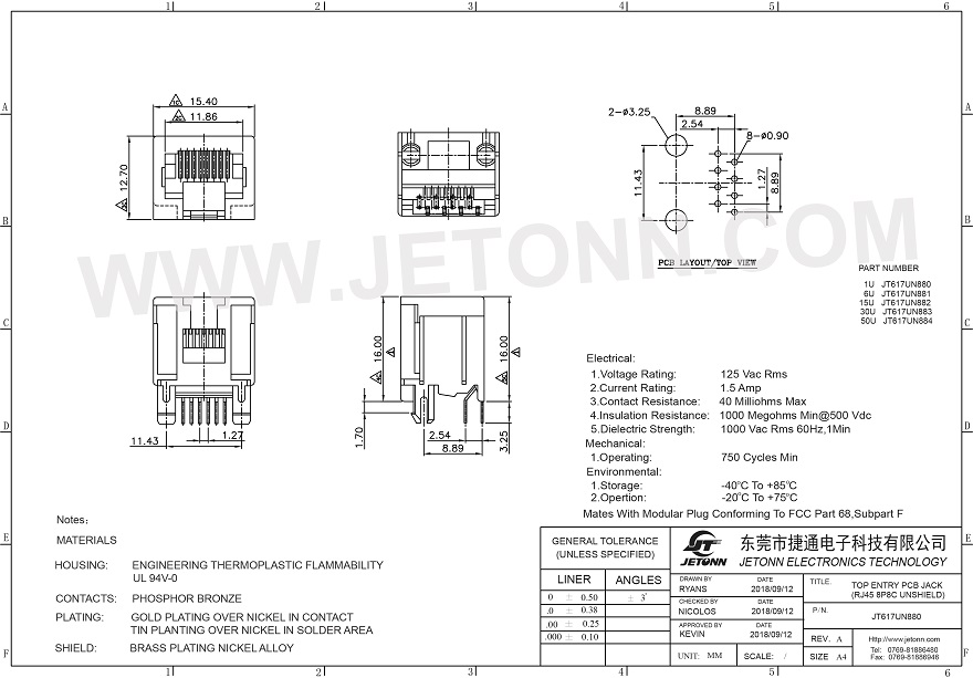 東莞市捷通電子科技有限公司專業生產超五類非屏RJ45插座,RJ45母座,RJ45連接器,網絡插座,網絡連接器