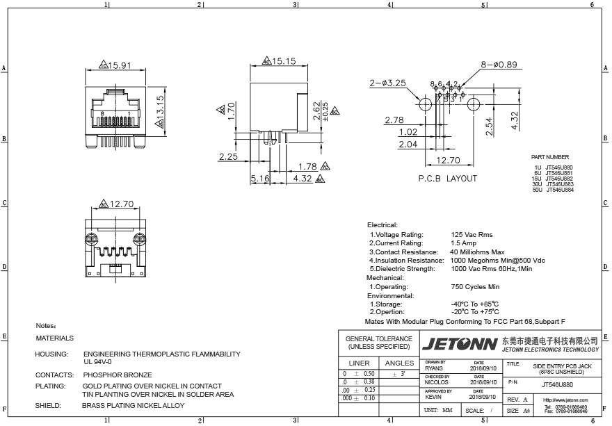 • 東莞市捷通電子科技有限公司 成立于2018年,是一家專業網絡通訊連接器及防水連接器制造商,主要從事連接器的研發、設計、生產、銷售以及模具開發等服務!