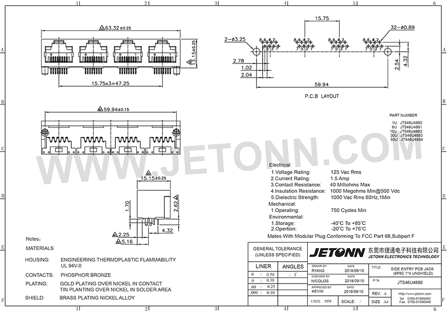 • 東莞市捷通電子科技有限公司 成立于2018年,是一家專業網絡通訊連接器及防水連接器制造商,主要從事連接器的研發、設計、生產、銷售以及模具開發等服務!