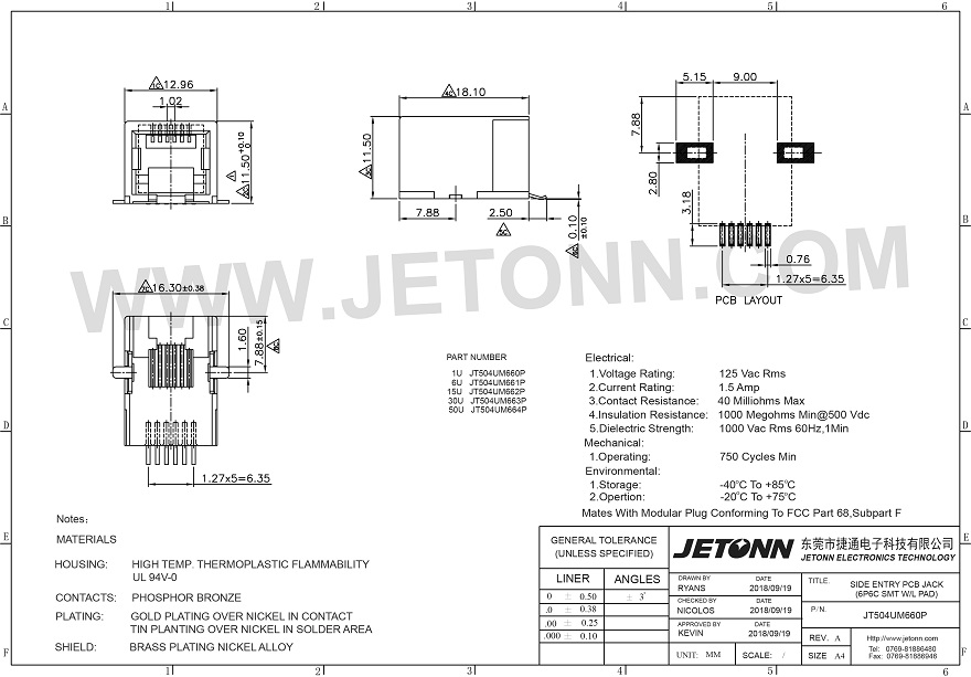 東莞市捷通電子科技有限公司主營RJ11貼片插座等其他它精密連接器,我司擁有專業的生產設備和技術型人才,我們堅持匠心品質,持續改進,為客戶提供滿意的產品,歡迎廣大客戶前來咨詢:0769-81886480