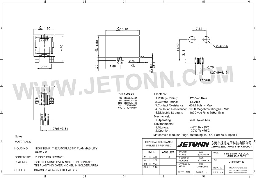 • 東莞市捷通電子科技有限公司 成立于2018年,是一家專業網絡通訊連接器及防水連接器制造商,主要從事連接器的研發、設計、生產、銷售以及模具開發等服務!