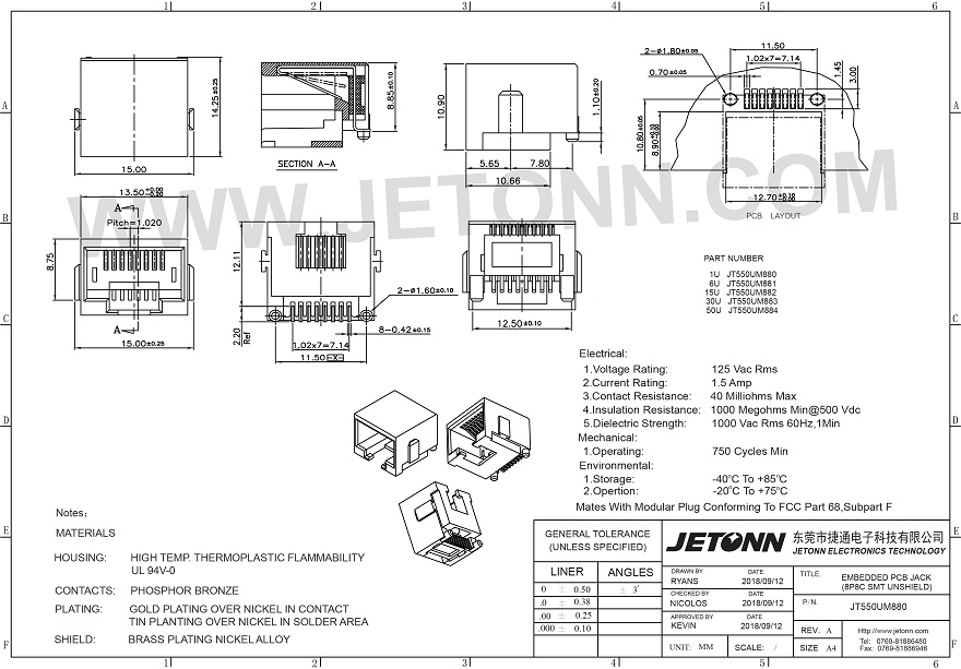• 東莞市捷通電子科技有限公司 成立于2018年,是一家專業網絡通訊連接器及防水連接器制造商,主要從事連接器的研發、設計、生產、銷售以及模具開發等服務!