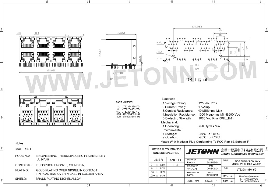 • 東莞市捷通電子科技有限公司 成立于2018年,是一家專業網絡通訊連接器及防水連接器制造商,主要從事連接器的研發、設計、生產、銷售以及模具開發等服務!