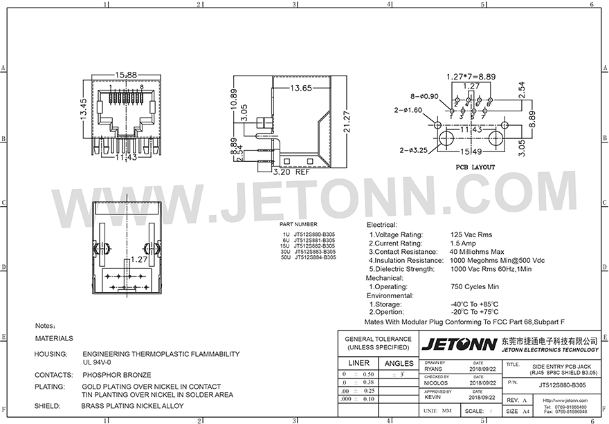 • 東莞市捷通電子科技有限公司 成立于2018年,是一家專業網絡通訊連接器及防水連接器制造商,主要從事連接器的研發、設計、生產、銷售以及模具開發等服務!